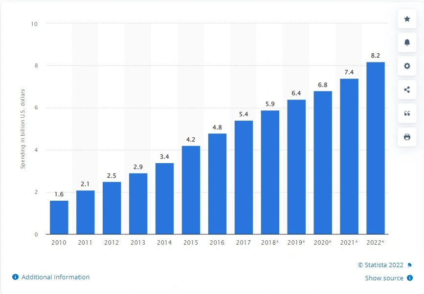 No es de extrañar que el mercado de marketing de afiliados en EE. UU. alcanzara los 8,2 mil millones de dólares en 2022, cuando en 2017 era de 5,4 mil millones.